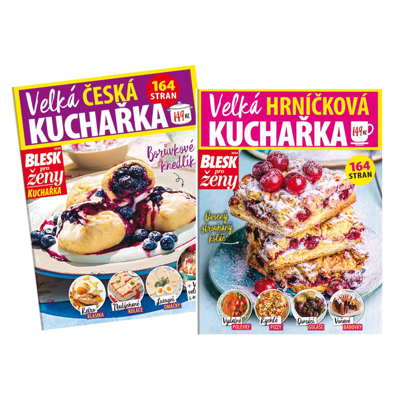 Balíček kuchařek - speciální edice Blesku pro ženy. Obsahuje Velkou českou kuchařku a Hrníčkovou kuchařku, obě plné receptů a praktických tipů pro všechny