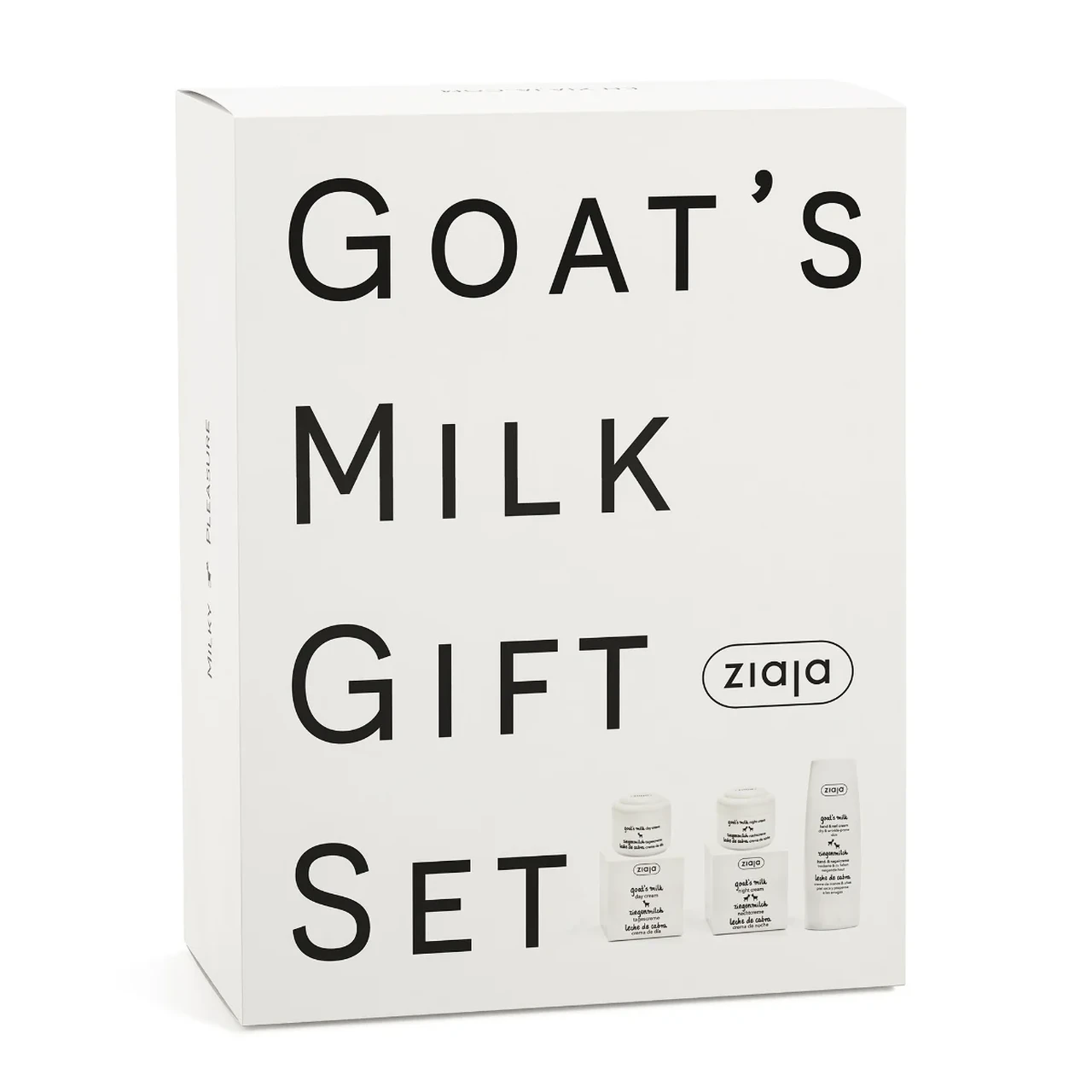 Dárková sada produktů Ziaja k péči o pleť a ruce s komplexem složek kozího mléka. Obsahuje denní krém (50ml), noční krém (50ml) a krém na ruce a nehty (80ml).