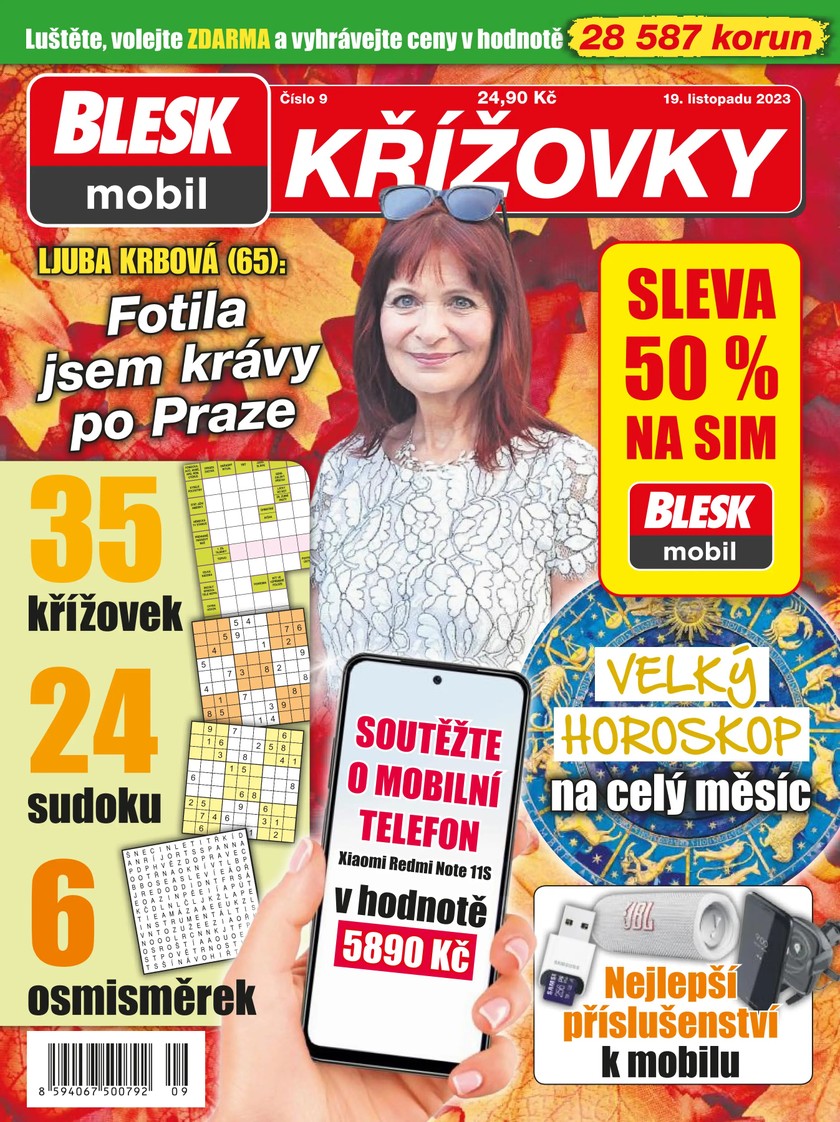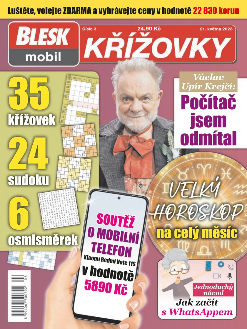 35 křížovek, 24 sudoku, 6 osmisměrek. Soutěže o hodnotné ceny.