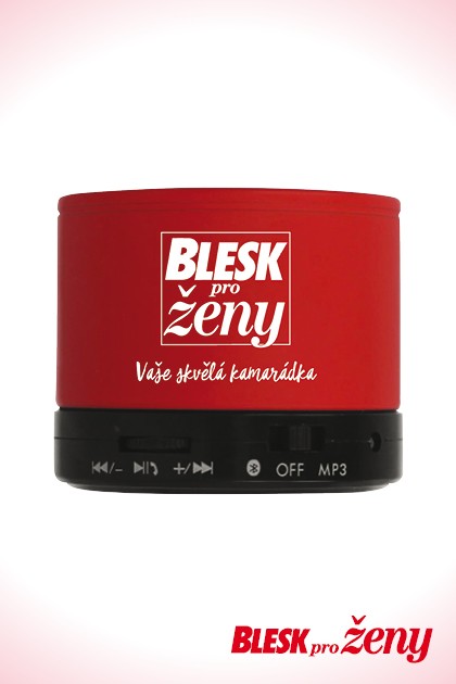 Bezdrátový reproduktor z ABS metalickým vzhledem červený s logem. Dobíjecí baterie. Obsahuje SD kartový port a AUX/USB kabel. Doba hraní cca 3 hod. Funkce handsfree telefonování. průměr 6x4,9 cm.