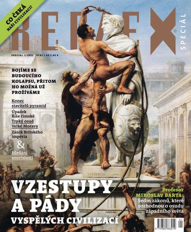 Reflex speciál - Vzestupy a pády vyspělých civilizací – Co čeká naši civilizaci? Bojíme se budoucího kolapsu, přitom ho možná už prožíváme. Konec stavitelů pyramid. Úpadek Říše římské. Trpký osud Velké Moravy. Zánik Britského impéria a hledání souvislostí. Profesor Miroslav Bárta: Sedm zákonů, které rozhodnou o osudu západního světa.