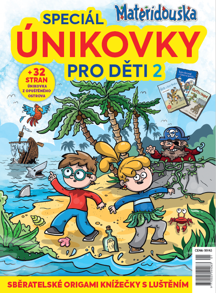 Únikovky pro děti 2 – speciál Mateřídouška. Na 68 stranách děti najdou hned 7 sběratelských knížeček se zábavnými únikovkami z různého prostředí. Na 40 stranách speciálu je pro děti připravená Velká úniková hra. V ní se přenesou na opuštěný ostrov. O neobyčejná setkání a spoustu hravých úkolů tu nebude rozhodně nouze.