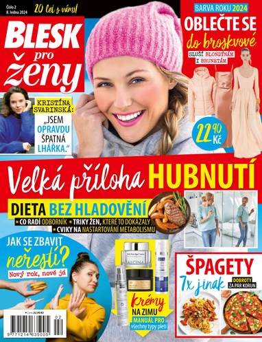 Velká příloha hubnutí. Dieta bez hladovění. Jak se zbavit neřestí. Špagety 7x jinak. Krémy na zimu. Barvy roku 2024, oblečte se do broskvové. Kristína Svarinská, jsem opravdu špatná lhářka.