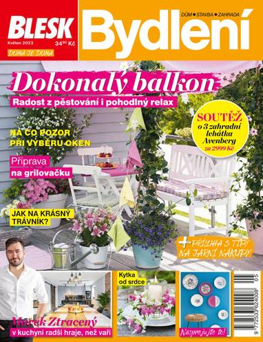 Dokonalý balkon: Radost z pěstování i pohodlný relax. Soutěž o 3 zahradní lehátka Avenberg. Na co pozor při výběru oken. Příprava na grilovačku. Jak na krásný trávník? Marek Ztracený: V kuchyni radši hraje, než vaří. Kytka od srdce. Nasprerujte to! Příloha s tipy na jarní nákupy.