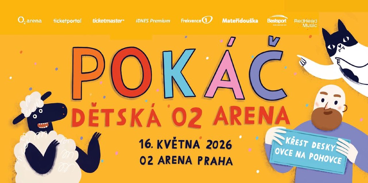 1+1 vstupenka na koncert Pokáčova dětská O2 arena konaný v sobotu 16. května 2026 v pražské O2 areně. Vstupenky jsou v celkové hodnotě 1380 Kč a jsou na konkrétní sedadla.