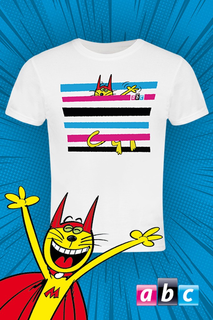 Triko speciálně navrženo pro čtenáře abc. Bílé tričko s motivem komiksového hrdiny Mourrisona. Materiál: 100% česaná a předepraná organická bavlna.