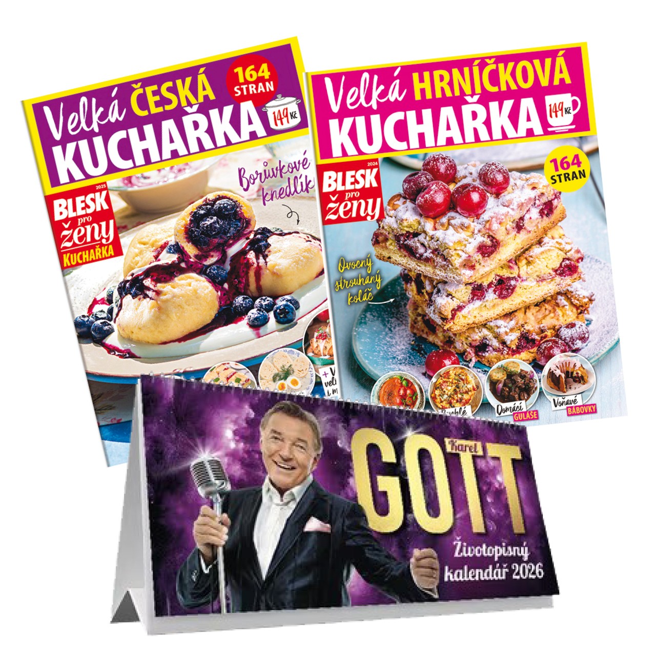 Půlroční předplatné tištěné BLESK pro ženy + dárek zdarma: Balíček kuchařek - Velká česká kuchařka a Velká hrníčková kuchařka + Stolní kalednář Karel Gott 2026 Více Od: 16. 3. 2026 23. 3. 2026 30. 3. 2026 7. 4. 2026 13. 4. 2026 20. 4. 2026 27. 4. 2026 4. 5. 2026 11. 5. 2026 18. 5. 2026 25. 5. 2026 1. 6. 2026 8. 6. 2026 15. 6. 2026 22. 6. 2026 29. 6. 2026 7. 7. 2026 13. 7. 2026 20. 7. 2026 27. 7. 2026 3. 8. 2026 10. 8. 2026 17. 8. 2026 24. 8. 2026 31. 8. 2026 7. 9. 2026 14. 9. 2026 21. 9. 2026 29. 9. 2026 5. 10. 2026 12. 10. 2026 19. 10. 2026 26. 10. 2026 2. 11. 2026 9. 11. 2026 16. 11. 2026 23. 11. 2026 30. 11. 2026 7. 12. 2026 Tištěné vydání 573 Kč