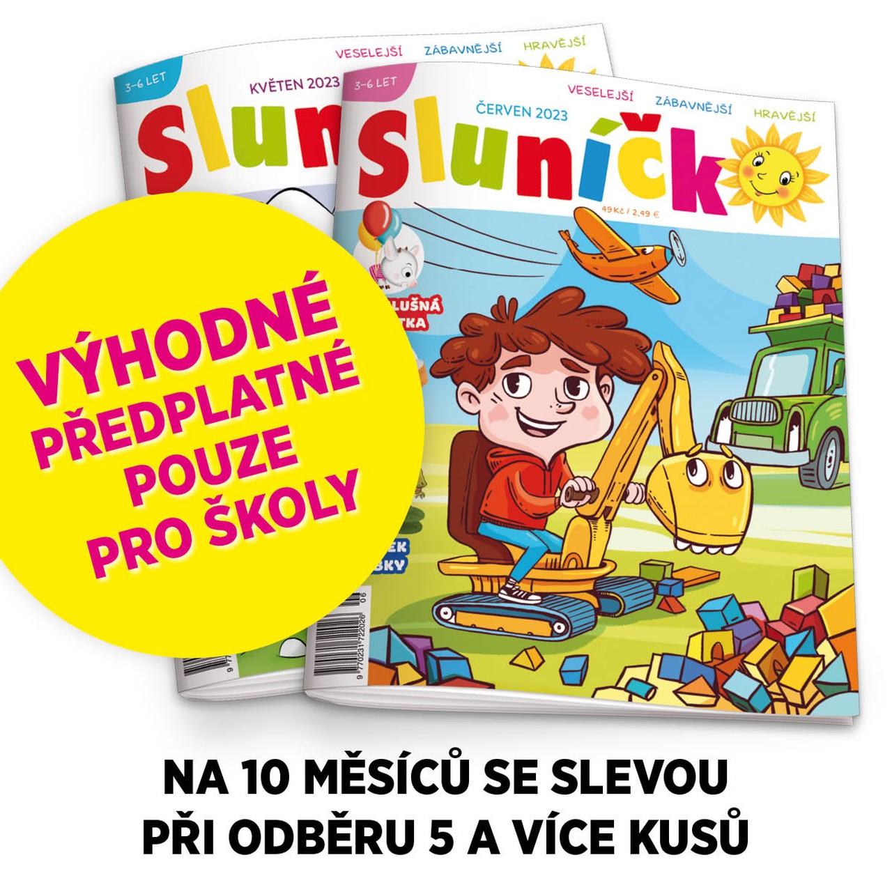 Dopřejte svým dětem trochu víc Sluníčka. Časopis Sluníč¬ko patří více než 50 let (poprvé vyšlo v roce 1967) ke stálicím dětského světa. Jako svůj „první“ časopis si ho kdysi oblíbily naše maminky, my sami a dnes ho předčítáme i svým dětem. Sluníčko se snaží děti nejen pobavit, ale i něco je naučit. A protože jde většinou o nečtenáře ve věku od tří do šesti let – přináší kromě zábavných příběhů i velké množství hádanek, doplňovaček, hlavolamů, omalovánek, vystřihovánek a spoustu dalších úkolů.Podrobnosti